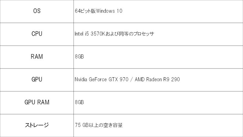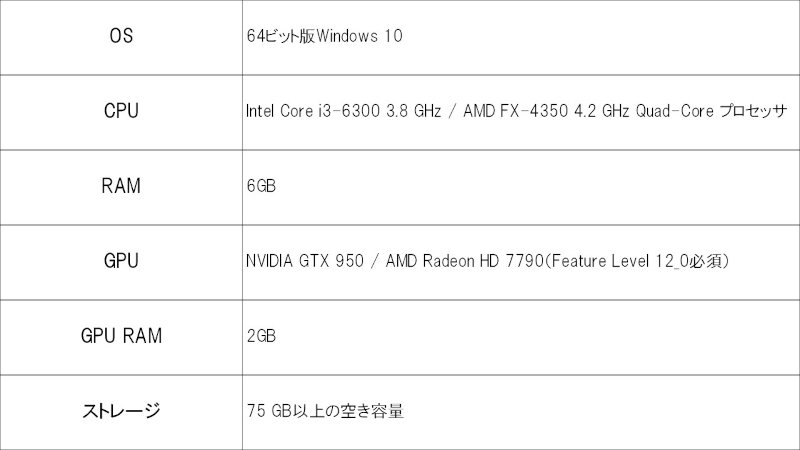 画質やフレームレートの設定をある程度高く保ち、美しいグラフィックでプレイしたいなら、以下のようにさらに高いスペックが要求されます。
