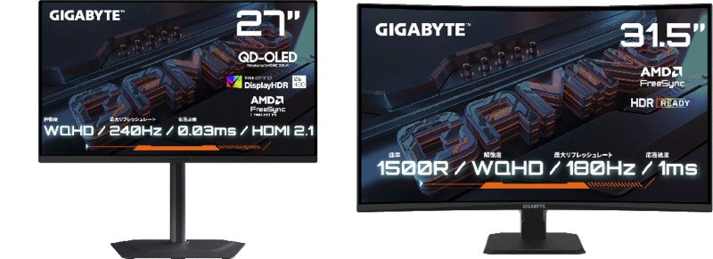 新たに発売されるのは「GIGABYTE MO27Q2」「GIGABYTE GS32QCA」の二つ。